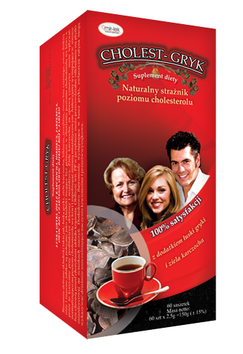 Cholest-Gryk to ziołowa alternatywa dla osób dbających o właściwy poziom cholesterolu we krwi i prowadzących profilaktykę przeciwmiażdżycową. Preparat zawiera łuskę gryki, ziele karczocha, kwiat hibiskusa, owoc bzu czarnego, owoc dzikiej róży,jabłko, jarzębina.